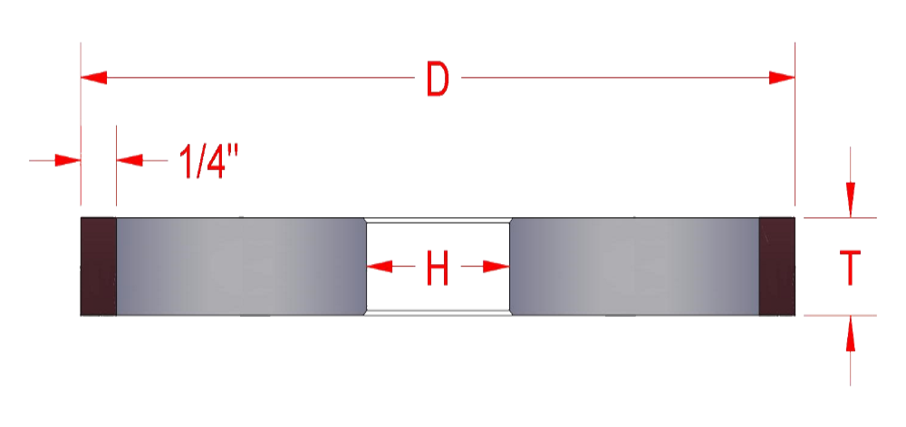 Order NumberWheel Diameter 'D'Abrasive Thickness 'T'Abrasive Depth