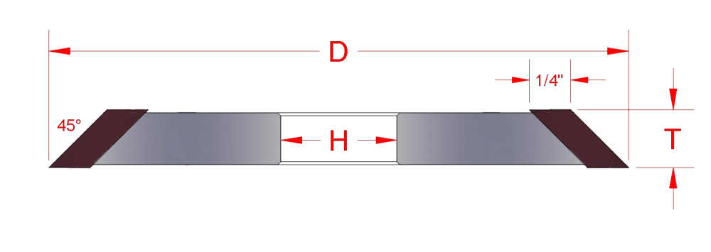 Order NumberWheel Diameter 'D'Abrasive Thickness 'T'Abrasive Depth Angle "A"