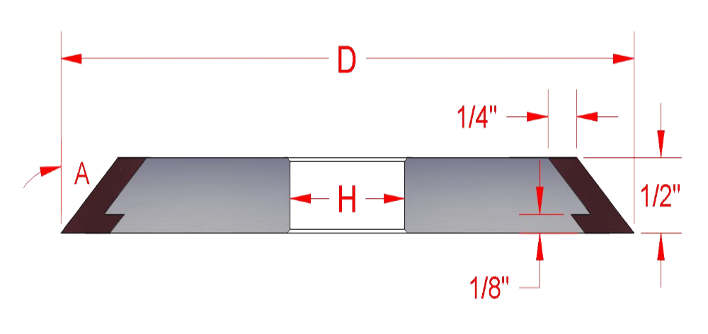 Order NumberWheel Diameter 'D'Abrasive Thickness 'T'Abrasive Depth Angle "A"